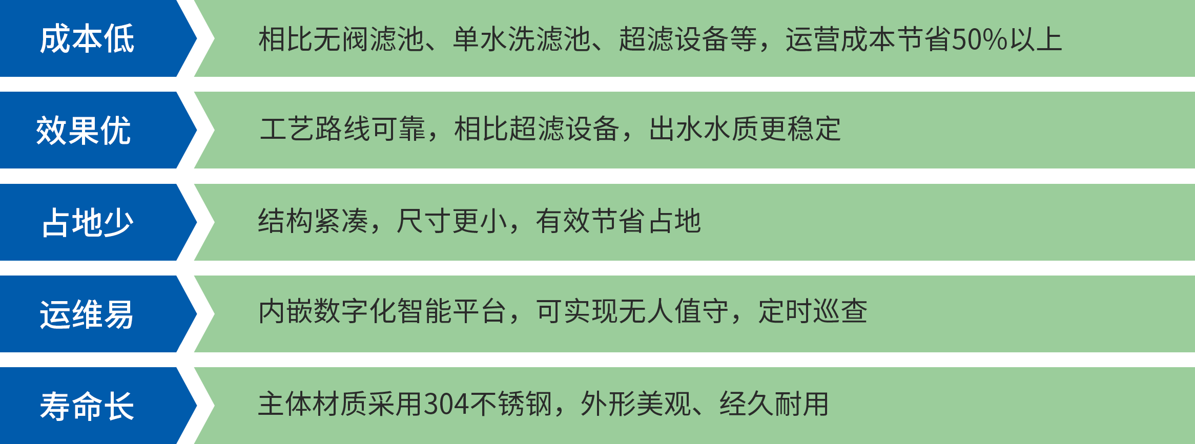该模块日产水量50-1000吨,是我公司结合农村地表水的水源特性、运营特性等研发的不锈钢组合式一体化净水设备,经处理后出水水质优于《国家生活饮用水卫生标准》GB5749-2022的要求。