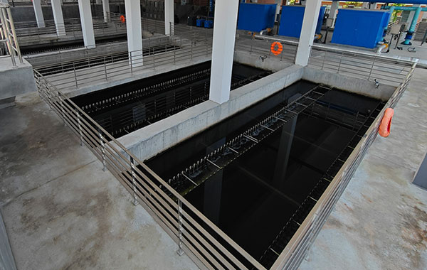反硝化滤池采用球形复合滤料,水头损失仅1.0m左右(常规2.0m以上),水质稳定达标。