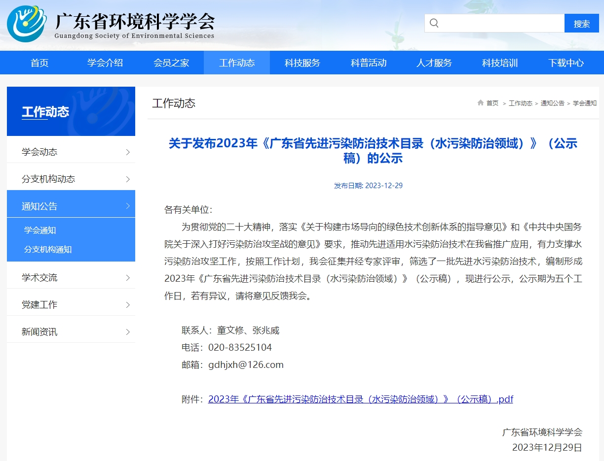 喜报 | 上向流反硝化滤池及模块化装备入选2023 年《广东省先进污染防治技术目录》